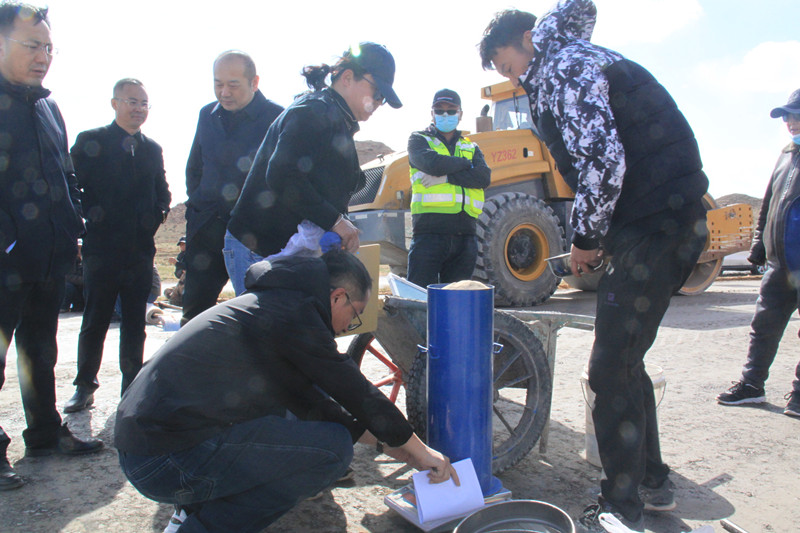 董事長一行來到施工現(xiàn)場進行了實地查看,觀察路面的壓實度、厚度及平整度等,對各項目部的工程安全質量措施的落實執(zhí)行情況進行邊查邊看邊問。檢查組一行認真聽取現(xiàn)場匯報,并對檢查過程中存在的問題與不足進行現(xiàn)場指導。