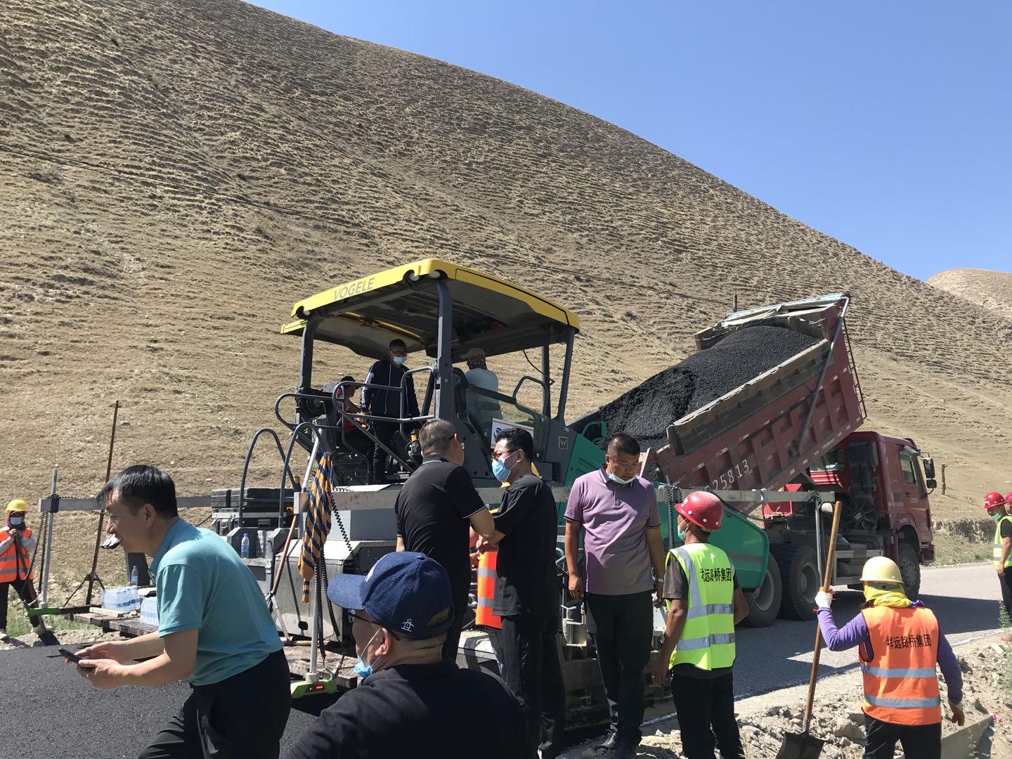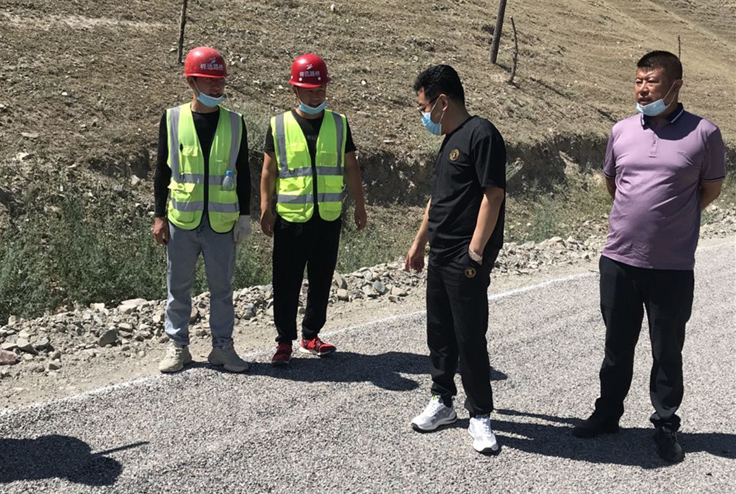 大家首先來到施工現(xiàn)場,工人們正頭頂烈日、腳踩高溫緊張的作業(yè),站在離攤鋪的位置幾米遠都能感覺到陣陣熱浪撲來,就是在這樣的工作環(huán)境下,我們的工人依然堅守著。檢查組一行認真觀察路面的壓實度、厚度及平整度等,對工程安全質量措施的落實執(zhí)行情況進行邊查邊看邊問,并對檢查過程中存在的問題與不足進行現(xiàn)場指導。