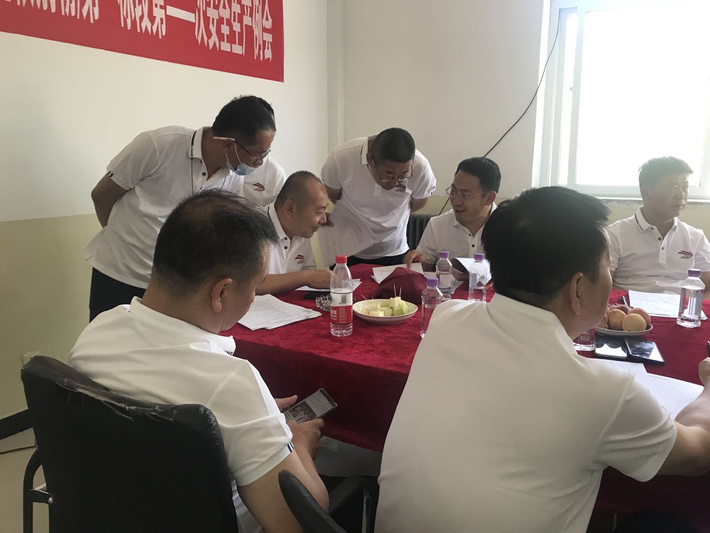 現(xiàn)場檢查結束后,一行人來到項目部檢查有關安全質量落實情況等方面的內業(yè)資料,對內業(yè)資料中存在的問題進行指正。