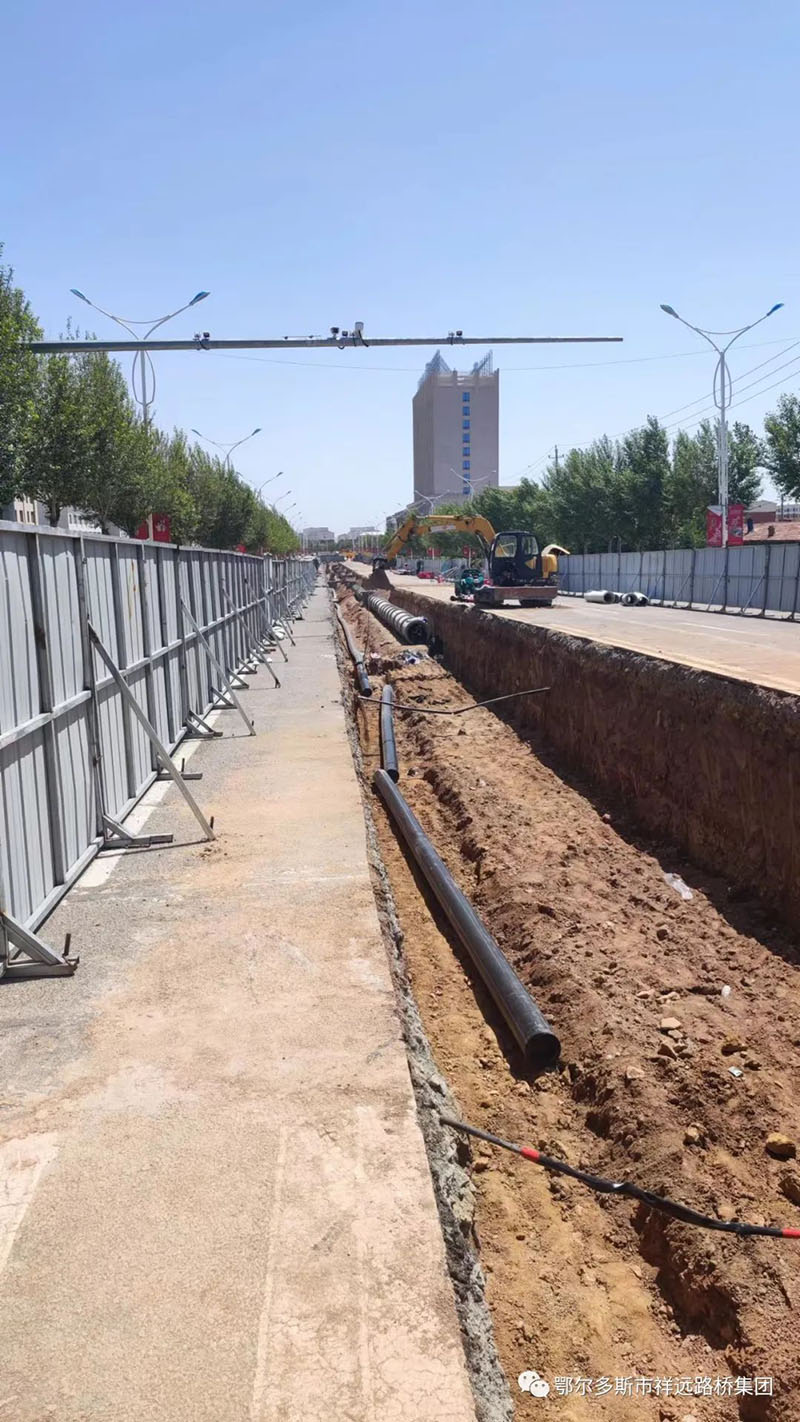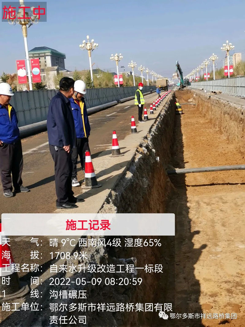 察右中旗科布爾鎮(zhèn)自來水升級(jí)改造工程項(xiàng)目(鑲蘭大街給水工程)主要工程數(shù)量: PE400管道2317米、 PE315管道2145米、PE200管道119米、 PE160管道255米。各類檢查井79座,拆除路面25961.42m2,鋪筑瀝青混凝土路面25961.42m2,挖溝槽土方39483.31m3,回填方31394.71m3。